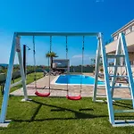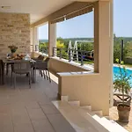 Die 5-Zimmer- Villa Providenca With Heated Pool Debeljak verfügt über eine Terrasse mit Aussicht auf die Berge sowie einen privaten Swimmingpool.